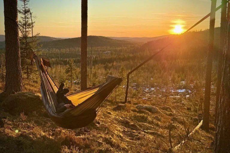 Vi sänker tröskeln för att gå ut och sova i skogen, med hammockar som är skönare att sova i än din säng.
