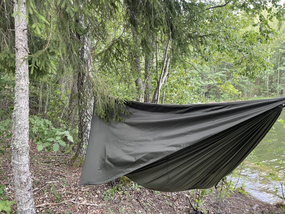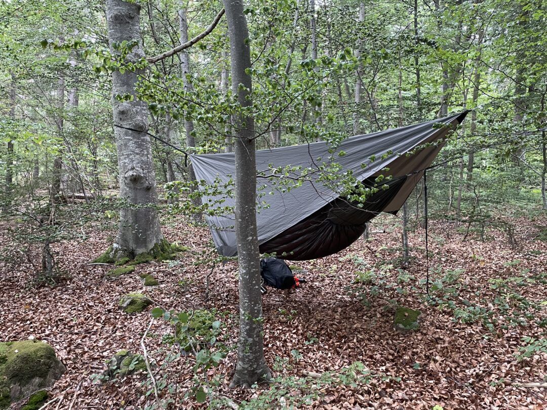 Jag har länge varit sugen på att testa en hammock. Jag är varken scout eller ingenjör vilket har avskräckt mig tidigare då många verkar kräva knutar och en massa handpåläggning innan den är redo att användas. Denna verkade perfekt med sin enkla uppsättning. Köpte hammockkitet med tarp och underquilt.